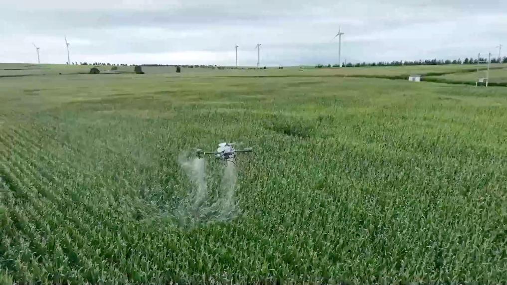 当前,正值玉米灌浆期。正在科尔沁左翼前旗察尔森镇水泉嘎查万亩高尺度农田上空,拆载农药的无人机正正在沿着预设航路喷洒农药。